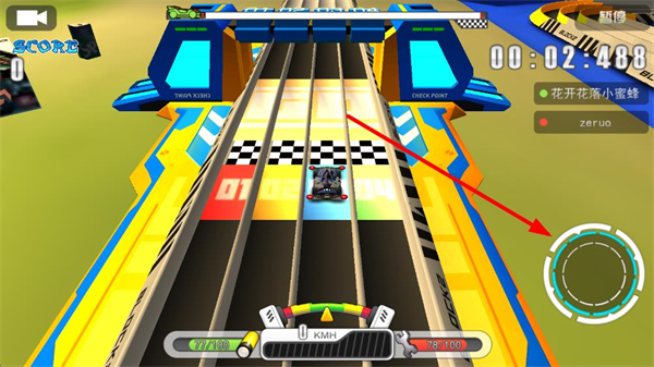 4、游戲界面右下方有操控按鈕,通過它來控制賽車速度,在直道上可以全力加速,在彎道提前減速,讓賽車平穩(wěn)通過彎道,提升比賽成績。