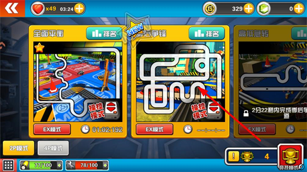 2、點擊手動賽后,進入賽道選擇界面,這里有不同難度和地形的賽道,新手初期可以選擇難度相對較低的賽道。