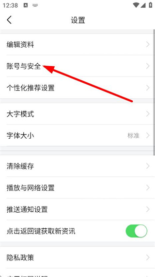 2、在設置頁面,點擊賬號與安全,進入賬號與安全頁面。