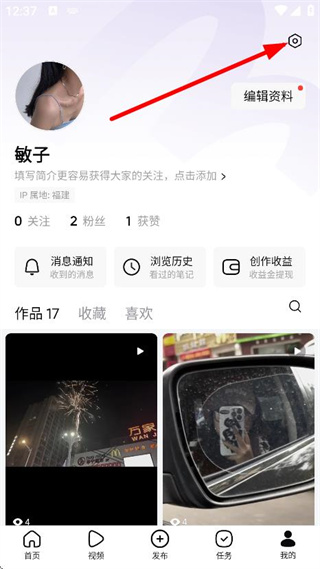 1、在我的頁面,點擊右上角的設置圖標,進入設置頁面。