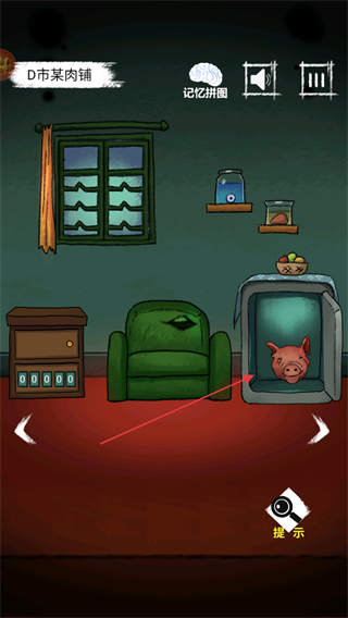 2、轉(zhuǎn)移視角,點擊房間里的冰柜,獲取里面的貢品豬頭道具。