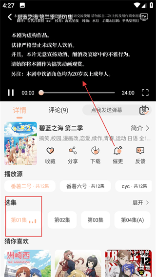 3、在番劇播放頁(yè)面的選集區(qū)域,選擇第1集觀看番劇內(nèi)容。