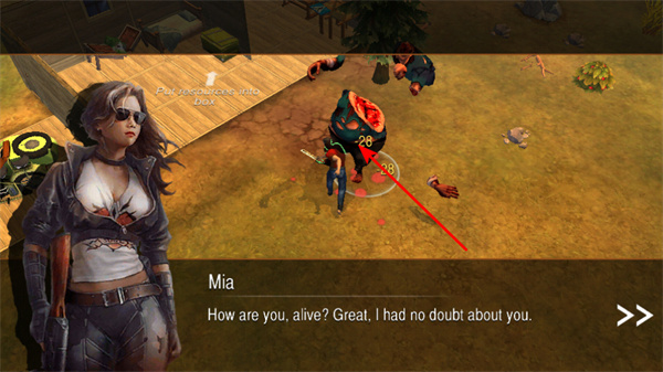 3、與角色互動(dòng),點(diǎn)擊打擊敵人,隨著劇情推進(jìn),與Mia等角色互動(dòng),獲取劇情信息和任務(wù)指引。