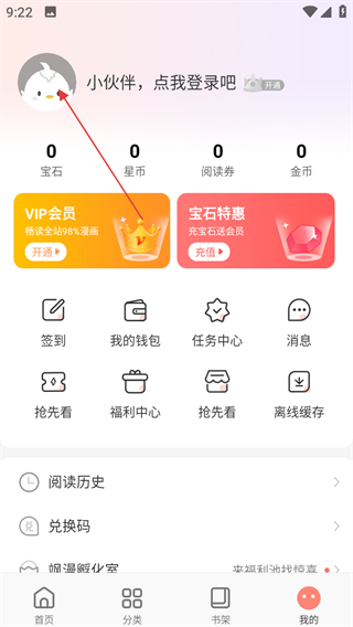 2、在個人頁面,點擊頭像區(qū)域,進入登錄引導(dǎo)界面。