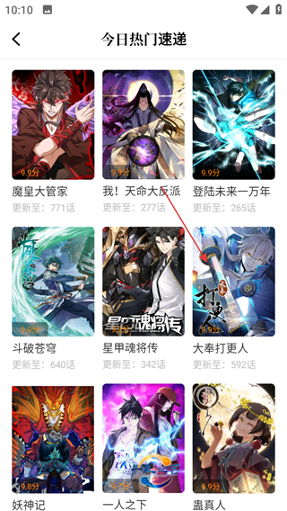 2、在今日熱門速遞列表頁面,找到大奉打更人,點(diǎn)擊進(jìn)入其詳情頁面。