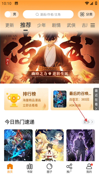 1、進(jìn)入軟件首頁,點(diǎn)擊更多,進(jìn)入今日熱門速遞列表頁面。