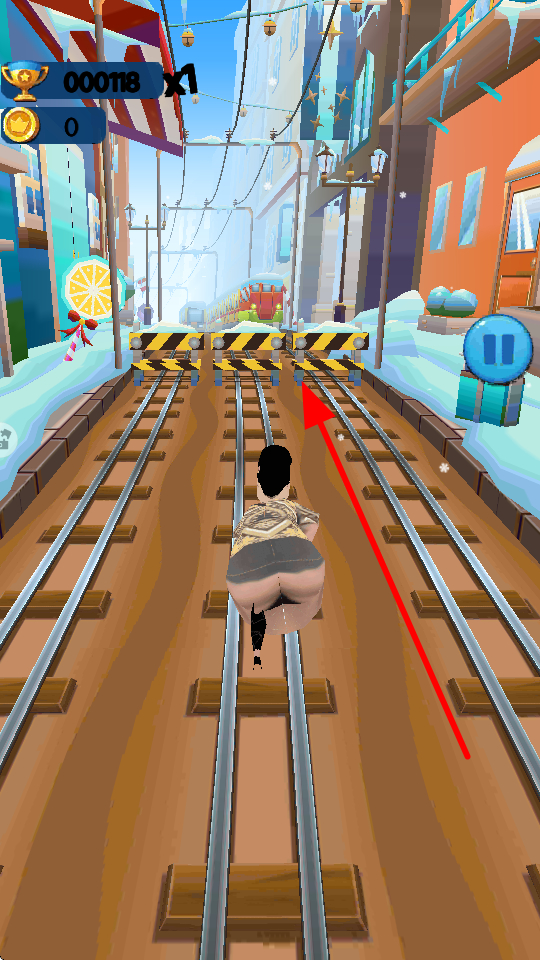 3、向上滑動屏幕,角色會高高躍起,可以越過前方的阻攔物,保持奔跑前行節(jié)奏。