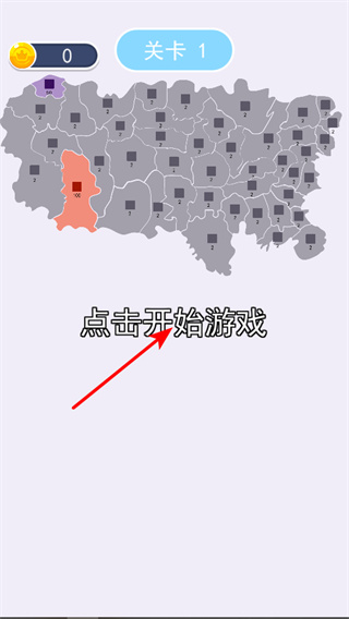 1、開始游戲,需要點擊點擊開始游戲按鈕,進入關(guān)卡1,開啟領(lǐng)土占領(lǐng)的挑戰(zhàn)。
