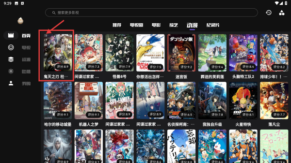 1、打開影視應(yīng)用,點(diǎn)擊頂部動(dòng)漫分類標(biāo)簽,進(jìn)入動(dòng)漫內(nèi)容專區(qū)。