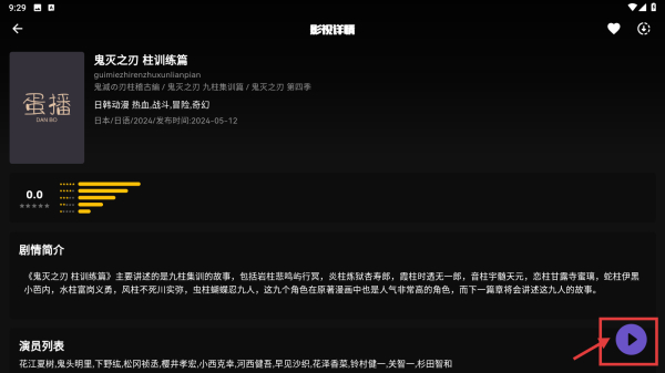 2、在動(dòng)漫專區(qū),找到鬼滅之刃 柱訓(xùn)練篇作品封面,點(diǎn)擊進(jìn)入播放流程。