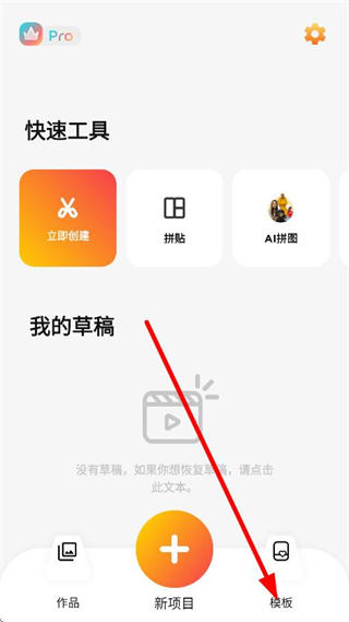 1、在軟件首頁,點(diǎn)擊底部的模板,進(jìn)入模板選擇頁面。