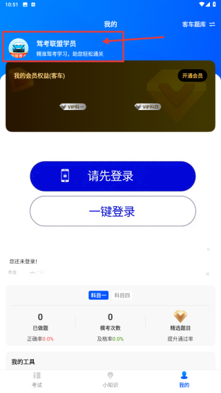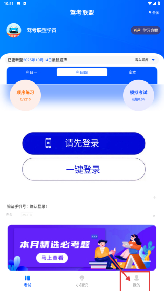 1、打開駕考聯(lián)盟APP,點擊底部我的選項,進入個人中心頁面。