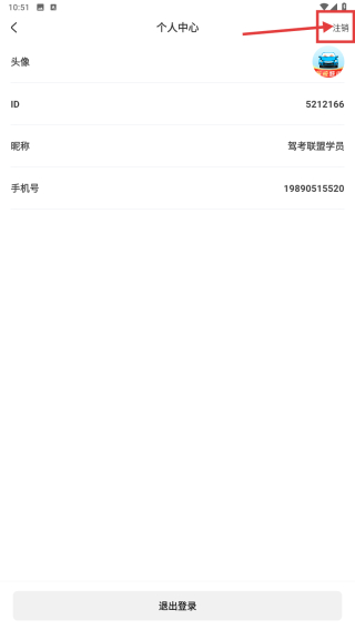 3、在個人信息詳情頁,點擊右上角注銷選項,觸發(fā)注銷確認彈窗。