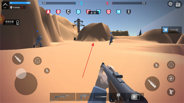 2、利用虛擬搖桿操控角色移動,靠近敵人后瞄準(zhǔn)并點(diǎn)擊射擊按鈕攻擊。