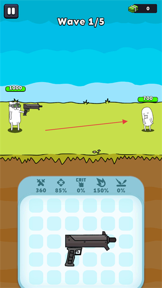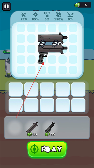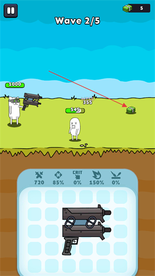 2、賺取金幣后,點擊下方武器欄購買新武器并放置在格子中。