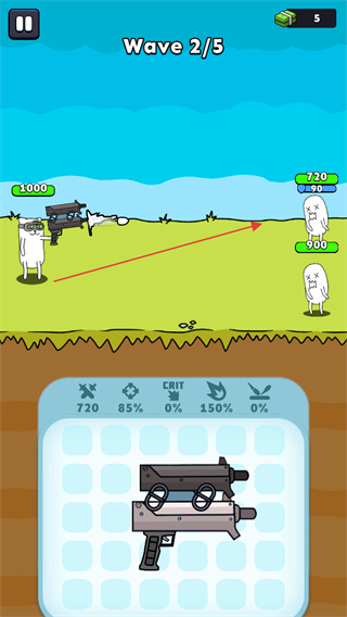 1、進入游戲查看波次Wave1/5,用初始武器攻擊前方敵人。