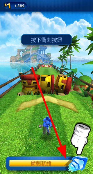 3、當(dāng)沖刺量表準(zhǔn)備好后,按下沖刺按鈕,索尼克會快速沖刺,能更輕松地通過障礙,跑得更快更遠(yuǎn)。