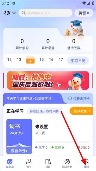 2、在天才鴨學習助手主界面,點擊我的,進入個人中心頁面。