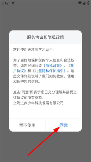 1、在服務(wù)協(xié)議和隱私政策彈窗中,點擊同意,進入主界面。