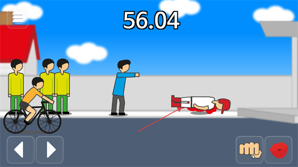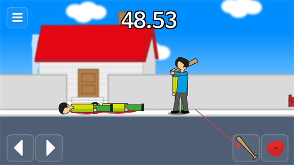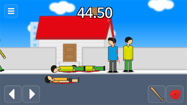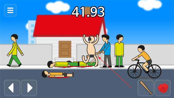 2、屏幕下方有操作按鈕如拳頭、棒球棍圖標(biāo),點(diǎn)擊按鈕操控角色做出相應(yīng)動作,對場景中的目標(biāo)進(jìn)行攻擊或互動。