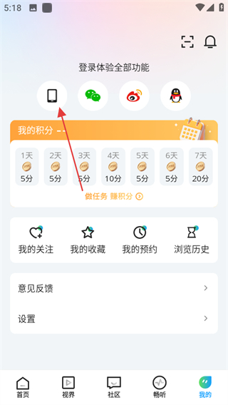 2、在個(gè)人頁(yè)面,點(diǎn)擊手機(jī)圖標(biāo),進(jìn)入登錄四川觀察頁(yè)面。