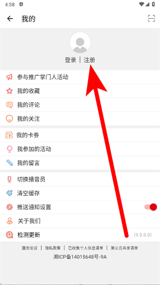 3、在我的頁面,點擊注冊。