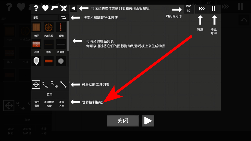 3、界面左上方還有控制相關(guān)按鈕,通過這些按鈕,能對創(chuàng)作的整體環(huán)境、時間等進行設(shè)置,讓創(chuàng)作場景更符合預(yù)期設(shè)想。