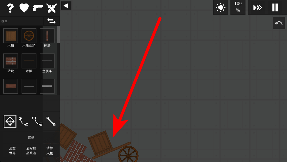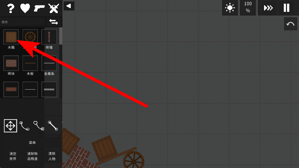1、界面會展示木箱、木質(zhì)車輪等多種道具,人們可根據(jù)創(chuàng)作需求,選擇相應(yīng)道具,將其拖拽到畫面中的合適位置,為創(chuàng)作打基礎(chǔ)。