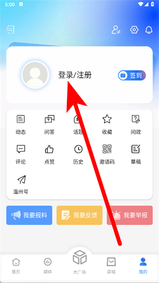 3、進(jìn)入我的頁面,點(diǎn)擊登錄注冊(cè)。