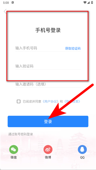 3、輸入手機(jī)號(hào)碼、驗(yàn)證碼,勾選后,點(diǎn)擊登錄,完成注冊(cè)。