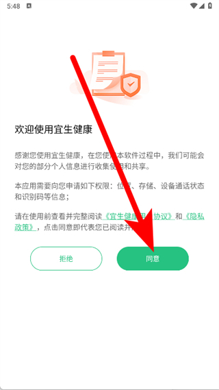 1、打開宜生健康,在歡迎頁面點(diǎn)擊同意。