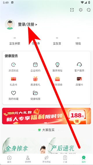 3、在我的頁面,點(diǎn)擊登錄注冊,進(jìn)入登錄注冊頁面。