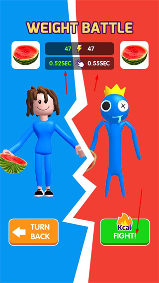 3、參與WEIGHT BATTLE對戰(zhàn),點擊Kcal FIGHT按鈕,憑借積累的卡路里與對手較量。