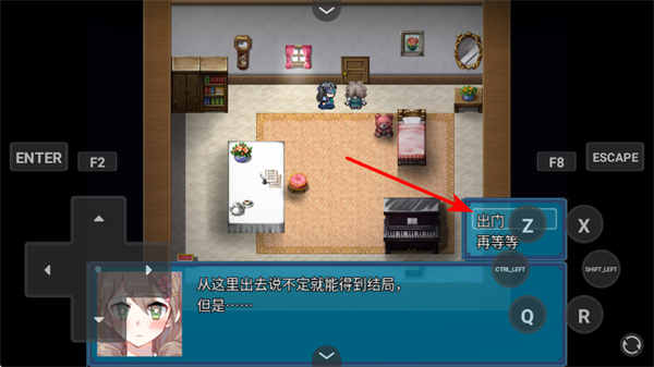 3、選擇行動選項(xiàng),面對關(guān)鍵抉擇如出門或再等等時,選擇合適的行動選項(xiàng),推進(jìn)游戲的不同分支劇情。