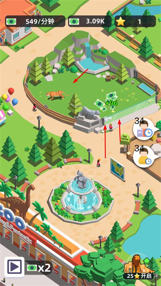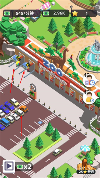 2、關(guān)注動物園入口,吸引游客入園,游客會為動物欄帶來收益,持續(xù)積累資金用于后續(xù)發(fā)展。
