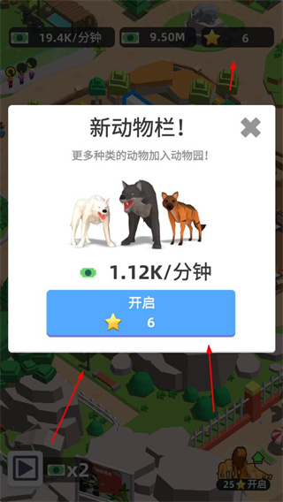 4、花費星星開啟新動物欄,引入更多種類動物,豐富動物園內(nèi)容,提升整體收益和評分。