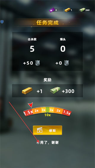 4、消滅所有敵人后,任務(wù)完成,查看擊殺數(shù)等信息,點(diǎn)擊領(lǐng)取按鈕獲取獎(jiǎng)勵(lì)。