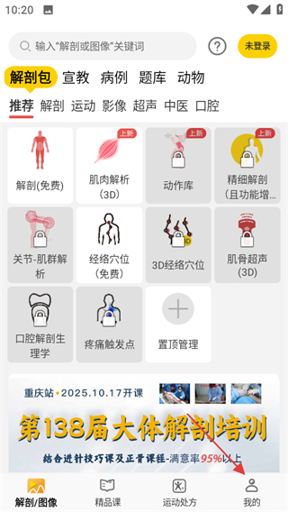 1、進(jìn)入3DBody解剖圖像頁(yè)面,點(diǎn)擊底部我的,進(jìn)入個(gè)人頁(yè)面。