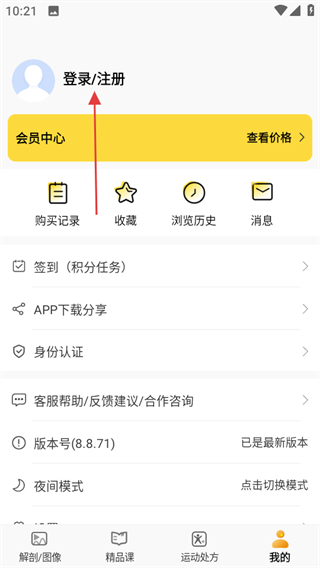 2、在個(gè)人頁(yè)面,點(diǎn)擊登錄注冊(cè),進(jìn)入登錄注冊(cè)頁(yè)面。