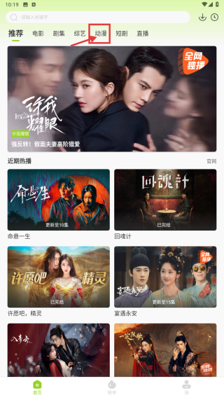 1、打開視頻類APP,點(diǎn)擊頂部動(dòng)漫標(biāo)簽,切換到動(dòng)漫分類頁面。