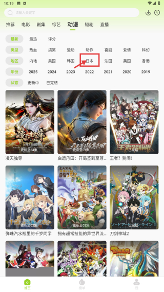 2、在動(dòng)漫分類頁面,點(diǎn)擊日本標(biāo)簽,篩選出日本動(dòng)漫列表。
