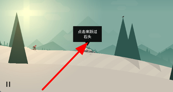 2、遇到石頭障礙時(shí),點(diǎn)擊屏幕讓角色跳躍,越過石頭,繼續(xù)在場景中滑行,避免被石頭阻礙。