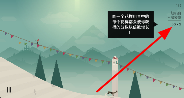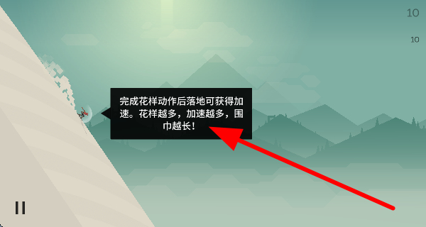 3、完成花樣動(dòng)作后落地,能獲得加速效果,花樣越多,加速越多,圍巾也會(huì)越長,增強(qiáng)滑行體驗(yàn)。