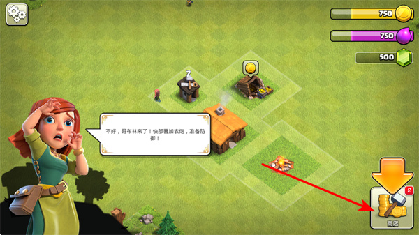 2、當出現(xiàn)哥布林來襲的緊急事件時,點擊資源按鈕,準備應(yīng)對哥布林的攻擊,保護自己的建筑和資源。