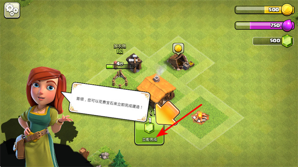 4、在建造或升級建筑時,點擊立即完成按鈕,利用寶石加速建筑進程,快速提升基地的建設(shè)和防御水平。