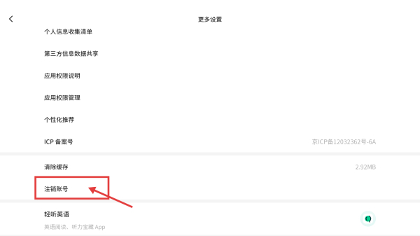 3、在更多設(shè)置頁(yè)面,點(diǎn)擊注銷賬號(hào)選項(xiàng),進(jìn)入注銷賬號(hào)說明頁(yè)面。