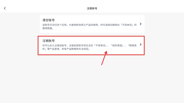 4、在注銷賬號(hào)說明頁(yè)面,點(diǎn)擊注銷賬號(hào)條目,即可進(jìn)入賬號(hào)注銷流程。