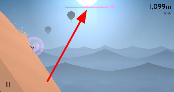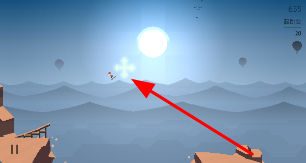1、遇到懸崖等危險區(qū)域,操控角色跳躍,跨越危險,繼續(xù)在場景中滑行,探索更遠的地方。