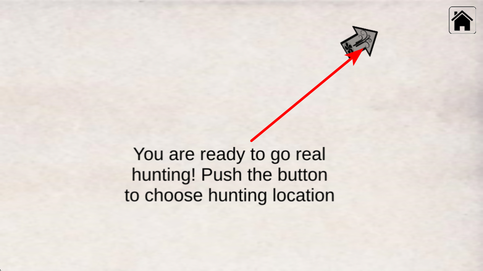 4、選擇狩獵地點(diǎn),點(diǎn)擊提示中的按鈕,選擇狩獵地點(diǎn),開啟真實(shí)的狩獵任務(wù),推進(jìn)游戲進(jìn)程。