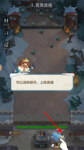 1、上陣英雄操作,消耗銀幣,點(diǎn)擊對(duì)應(yīng)按鈕上陣英雄,部署了防御的力量以抵御敵人進(jìn)攻。